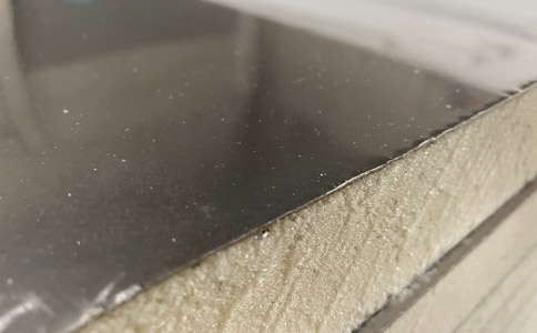 3、成品:聚氨酯包裹巖棉板為中間結(jié)構(gòu)巖棉。端部?jī)蓚?cè)各有50mm寬的聚氨酯保溫材料。它也可以制成所有填充巖棉的夾芯板。